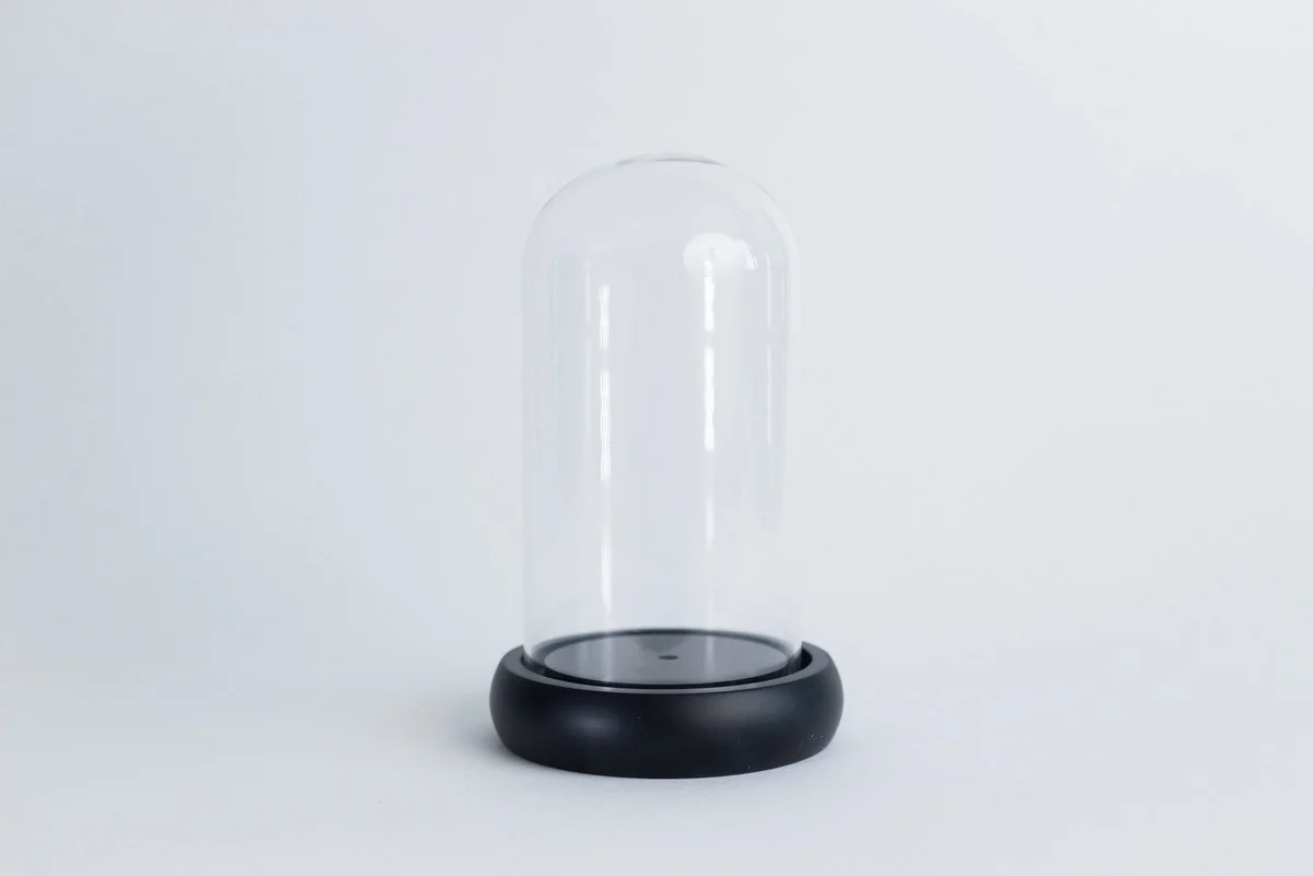 Elegantă și versatilă, această cupolă din sticlă cu bază rotundă din lemn negru este ideală pentru decoruri de sezon, mini-diorame, lumânări, flori criogenate sau mici aranjamente handmade. Designul minimalist o face potrivită atât pentru decoruri de Crăciun, cât și pentru proiecte creative sau cadouri personalizate. Se livrează goală, gata de umplut cu inspirație.